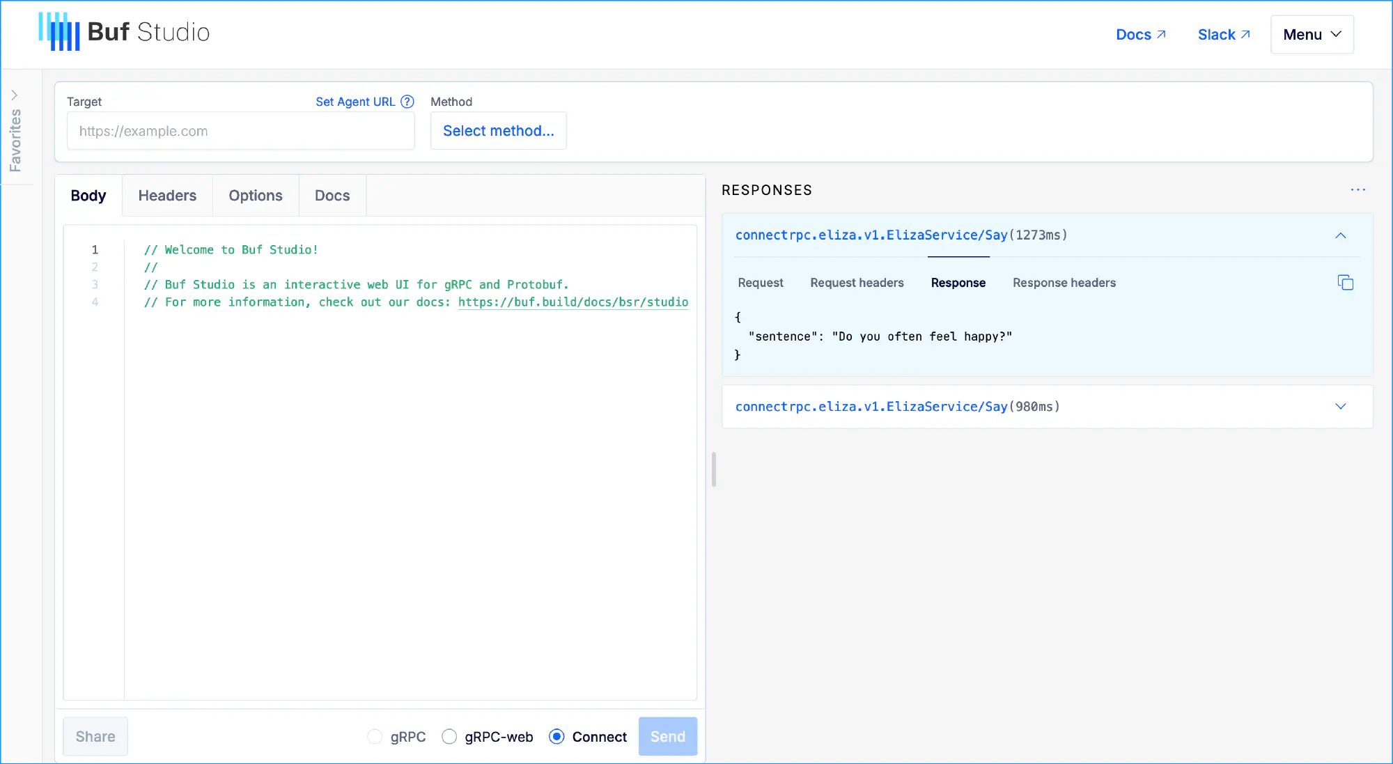 Buf’s buf curl and Buf Studio’s built-in gRPC client enable quick testing and interaction with your services. FauxRPC facilitates rapid prototyping by allowing you to mock gRPC services without implementing the actual server-side logic.